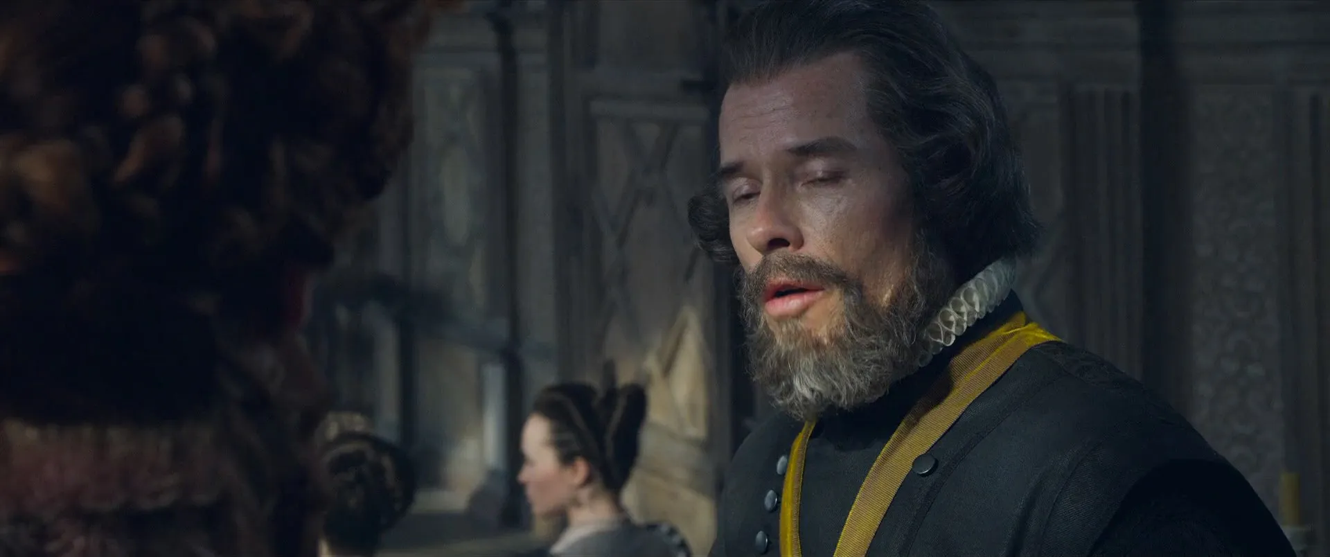 Cast: Saoirse Ronan as Mary Stuart, Margot Robbie as Queen Elizabeth I, Jack Lowden as Henry Darnley, Joe Alwyn as Robert Dudley, David Tennant as John Knox, Guy Pearce as William Cecil, Gemma Chan as Bess of Hardwick, Martin Compston as Earl of Bothwell, Ismael Cruz Córdova as David Rizzio, Brendan Coyle as Earl of Lennox, Ian Hart as Lord Maitland, James McArdle as James, Earl of Moray, Richard Cant as Thomas Andrews, Guy Rhys as Earl of Kent, Thom Petty as Earl of Shrewsbury, Izuka Hoyle as Mary Seton, John Ramm as Bull, Simon Russell Beale as Robert Beale, Maria Dragus as Mary Fleming, Liah O'Prey as Mary Livingston, Eileen O'Higgins as Mary Beaton, Greg Miller Burns as Thomas Hepburn, Aneurin Pascoe as John Hepburn, Adrian Derrick-Palmer as George Dalgleish, Kal Sabir as The Laird of Ramorny, Luke Kidd as James Haliburton, Adrian Lester as Lord Randolph, Georgia Burnell as Kate Carey, Alan Turkington as Thomas Jenye, Euan MacNaughton as William Kirkcaldy of Grange, Scot Greenan as Hector Maclean, Karen Dunbar as Commoner, Ian Hallard as Sir Richard Knightley, Andrew Rothney as King James I, Angela Bain as Snuffer Woman, Abby Cassidy as Fotheringhay Gentlewoman, Shalisha James-Davis as Fotheringhay Gentlewoman, Adam Bond as Sir William Douglas, Katharine O'Donnelly as Young Holyrood Servant, Grace Molony as Dorothy Stafford, Luke Hobson as Henry Killigrew, Ben Wiggins as John Tamworth, Eldredd Wolf as William Killigrew, Eric MacLennan as Portrait Painter, Nathen East as Andrew Ker of Fawdonside, Daniel Booroff as Knox's Secretary, Sean Buchanan as Francis Yaxley, Matthew Pidgeon as Wedding Announcer, Benjamin Barraclough as Officer, Jordan Turk as James MacDonald, Adam Stevenson as Urie Campbell, Scot Greenan as Hector MacLean, Chris Grahamson as Moray's Drummer, Ed Jones as William Taylor, Owen Gorman as Bishop, John Stahl as Fisherman, Kadiff Kirwan as Attaché, Alex Beckett as Sir Walter Mildmay, Will Rowlands as Soldier